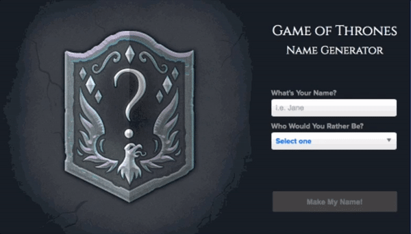 Inspired by popular TV shows, we created a few name generators that allow players to generate character-inspired names to share on social platforms.